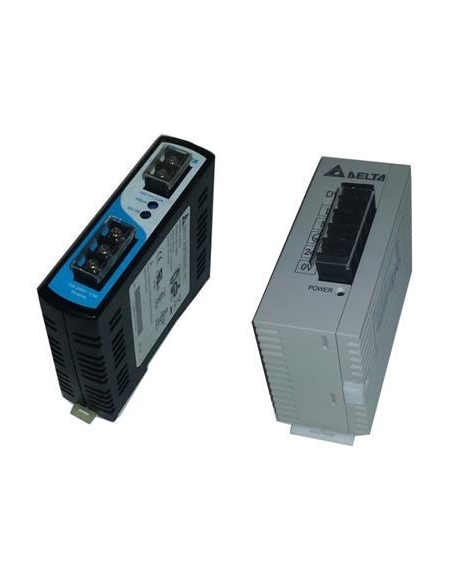 Fuente de alimentación conmutada para autómatas DELTA 24 Vcc 1A, montaje independiente sobre carril DIN o unida al autómata. Carcasa en plástico. Referencia: DVPPS01.