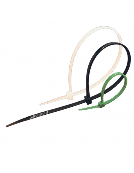 Brida sujatacables fabricadas en Nylon auotextinguibles y en diversos colores, de 300x7.8mm, suministradas en bolsas de 100 unidades. Porporciona una inmejorable sujeción y mínimo impacto sobre la superficie del elemento fijado.